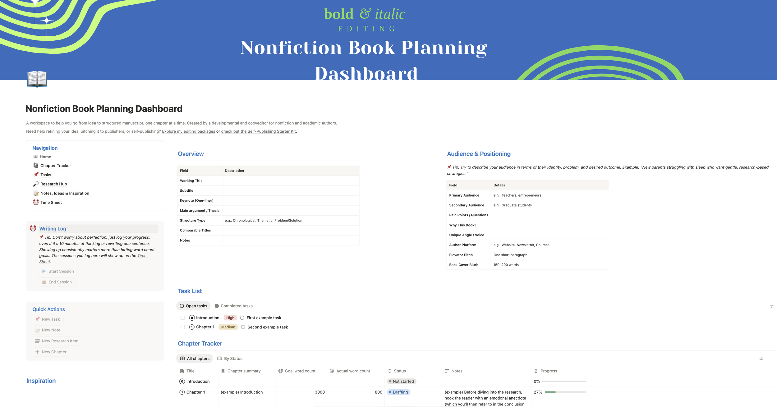 and my own Nonfiction Book Planning Dashboard (which is completely free)